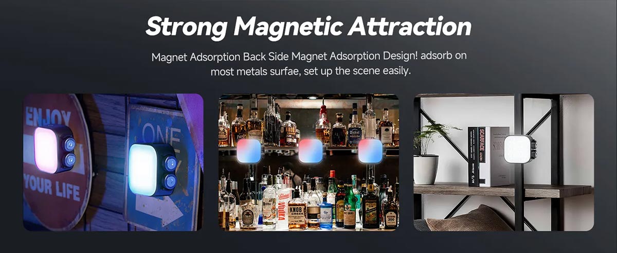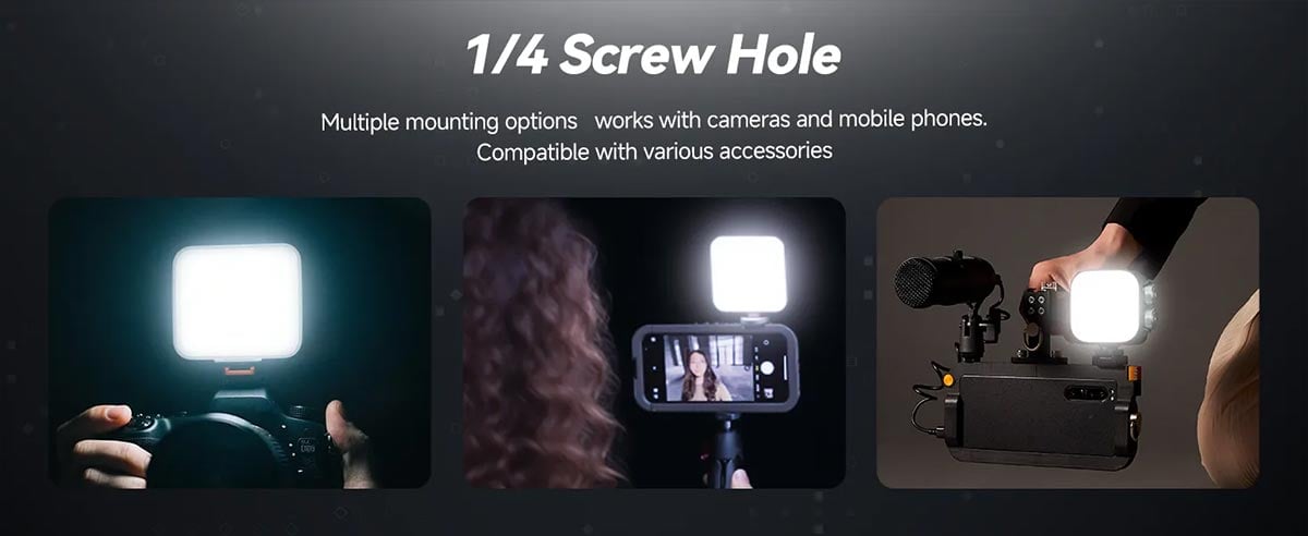Işığın arka yüzeyinde bulunan manyetik yapı sayesinde metal yüzeylere kolayca tutturulabilir, bu da yaratıcı yerleşimlerde esneklik sağlar. Küçük boyutlu gövde ile beraber gelen 1/4” bağlantı noktaları sayesinde tripod, ışık kolu ya da kamera kafasına montaj rahatlıkla yapılabilir. Bu da stüdyo dışı çalışmalarda ek aparat ihtiyacını azaltır.