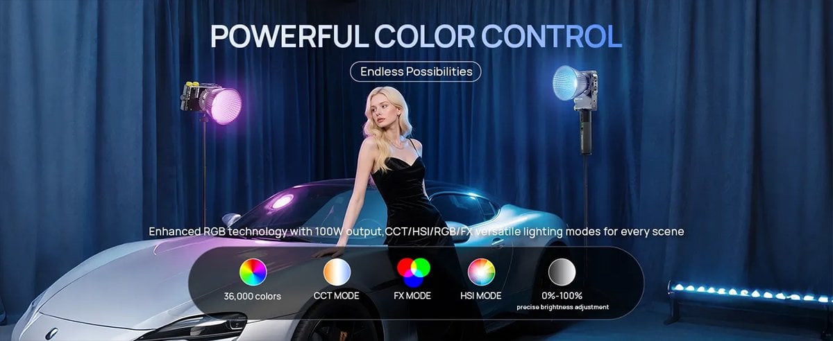 • 1× PHOTOOLEX Q100C 100W RGB COB Light