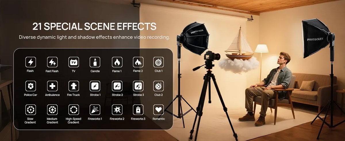 PHOTOOLEX Q100C 100W RGB COB Light, profesyonel video prodüksiyonundan içerik üretimine kadar geniş bir kullanım alanına hitap eden güçlü, taşınabilir ve son derece verimli bir aydınlatma çözümüdür. 100W gücündeki gelişmiş COB LED çipi sayesinde hem iç mekân hem de dış çekimlerde yüksek parlaklık ve tutarlı ışık performansı sağlar. 2700K ile 6500K arasında ayarlanabilir renk sıcaklığı, CRI 96+ ve TLCI 97 değerleri sayesinde renk doğruluğu üst seviyede olup özellikle ürün çekimleri, portre fotoğrafçılığı, YouTube videoları, stüdyo yayınları ve kısa film prodüksiyonları gibi profesyonel işlerde doğal ve gerçeğe en yakın görüntü elde etmenize yardımcı olur. Bu ışık modeli RGB desteği ile toplamda 36.000 farklı renk üretme kapasitesine sahiptir ve 12 farklı ışık efekti (şimşek, TV ışığı, polis arabası, patlama, disko vb.) sayesinde yaratıcı sahnelerinize sinematik bir dokunuş katmanıza olanak tanır. Özellikle sosyal medya içerik üreticileri, müzik klibi çekimleri, TikTok videoları ve yaratıcı fotoğraf projeleri için benzersiz atmosferler oluşturmayı kolaylaştırır. Cihazın minimal tasarımlı gövdesi hafiftir ve taşımayı kolaylaştırır. Evrensel Bowens mount sistemi sayesinde softbox, fresnel lens, bal peteği grid, barndoor gibi birçok ışık şekillendirici ile uyumludur. Bu da Q100C’yi hem profesyonel hem amatör kullanıcılar için ideal bir ışık haline getirir. Akıllı kontrol sistemi sayesinde ışığı ister arka paneldeki fiziksel butonlarla, ister kablosuz uzaktan kumanda aracılığıyla, isterseniz de mobil uygulama üzerinden Bluetooth bağlantısıyla kontrol edebilirsiniz. Böylece çekim ortamında ışık ayarlarını hızlıca değiştirerek zaman kaybetmeden çalışabilirsiniz. Kullanım yönünden esneklik sunan Q100C, özellikle şunlar için uygundur: – YouTube ve içerik üretimi – Kısa film ve reklam çekimleri – Ürün fotoğrafçılığı – Manken/portre çekimleri – Stüdyo ışık düzenleri – Canlı yayınlar ve e-ticaret çekimleri Bu ışık, yüksek güçte olmasına rağmen enerji verimliliği odaklı tasarlanmıştır. Uzun kullanım süresi boyunca tutarlı aydınlatma sağlar. Çekim sırasında 100W tam güçte çalışırken bile kararlı ışık çıkışı ve iyi bir ısı yönetimi sunar. Fanın akıllı kontrol sistemi sayesinde sessiz çalışır, bu da özellikle ses kaydı alınan profesyonel videolarda büyük avantaj sağlar. Q100C, güçlü performansıyla birlikte kullanıcı dostu bir kullanım deneyimi sunar. Hem başlangıç seviyesindeki fotoğrafçılar hem de profesyonel sinematograflar için güvenilir bir ışık çözümüdür. İçerik üreticiler, stüdyo kullanıcıları ve yaratıcı projelerle uğraşan herkes için pratik bir setup oluşturur. Eğer tek bir ışıkla çok yönlü bir çözüm arıyorsanız, PHOTOOLEX Q100C beklentilerinizi fazlasıyla karşılayacaktır.