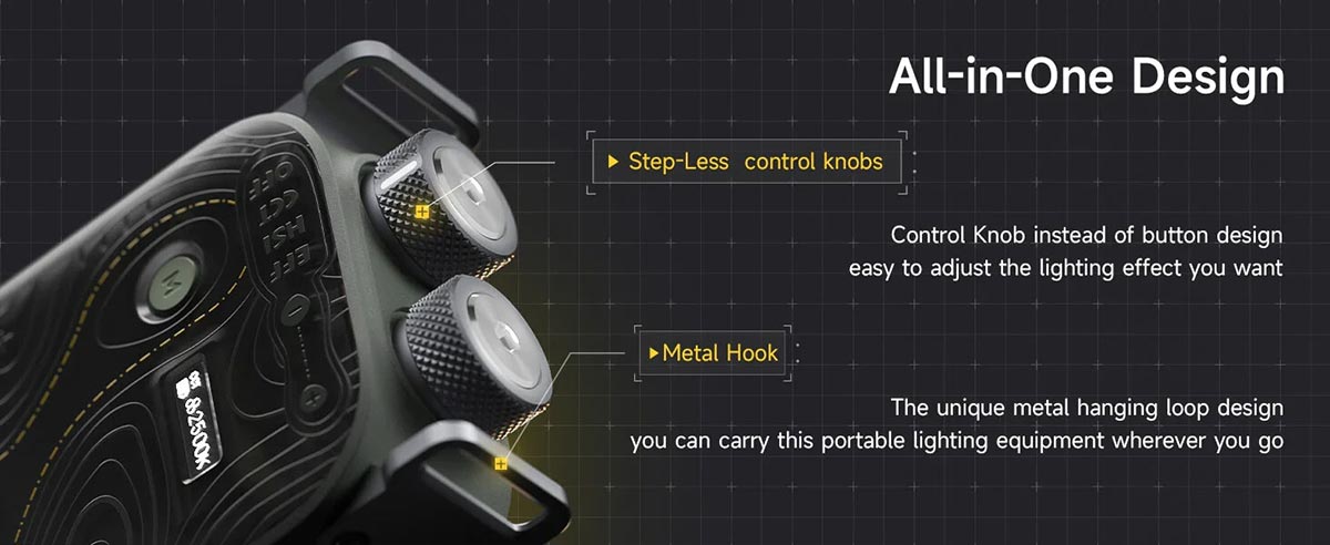 Dahili büyük kapasiteli 7500mAh batarya, özellikle uzun çekimlerde ışığın kesintiye uğramadan kullanılmasını sağlar. %100 parlaklıkta yaklaşık 200 dakika çalışabilir ve USB-C portu sayesinde yalnızca 3 saatte tamamen şarj olur. Taşınabilir şarj cihazlarıyla kullanım sırasında şarj edilebilmesi hareket halindeki içerik üreticileri için büyük kolaylıktır.